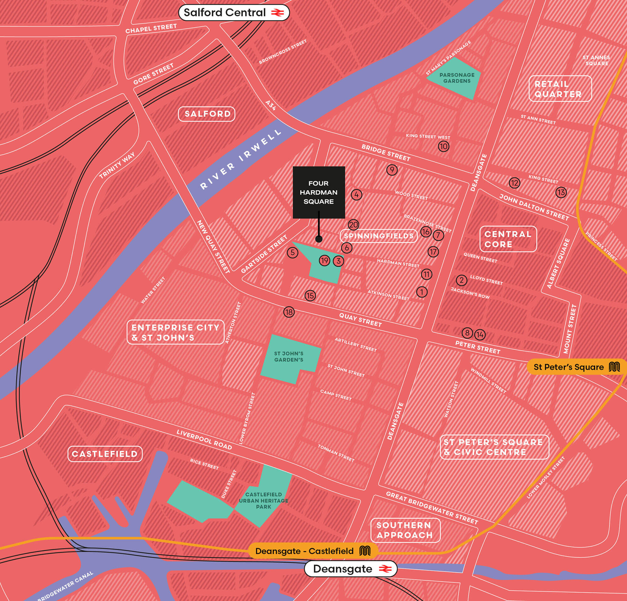 Four Hardman Square is at the heart of Spinningfields, now firmly established as a vibrant, 7-day-a-week destination for culture, retail, dining and entertainment.
